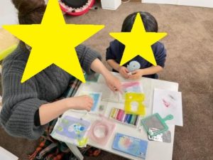 親子でパステルアートを行いました。色とりどりのパステルを使って