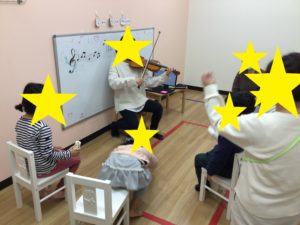 紙コップでマラカス作りをしたり、ヴァイオリン演奏を鑑賞したり、リトミックで音楽遊びをしたり♪