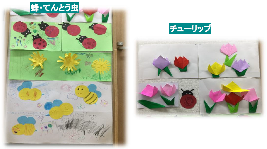 次は『蜂』『チューリップ』『てんとう虫』です。主に集団療育のお子様が作成しました🌷