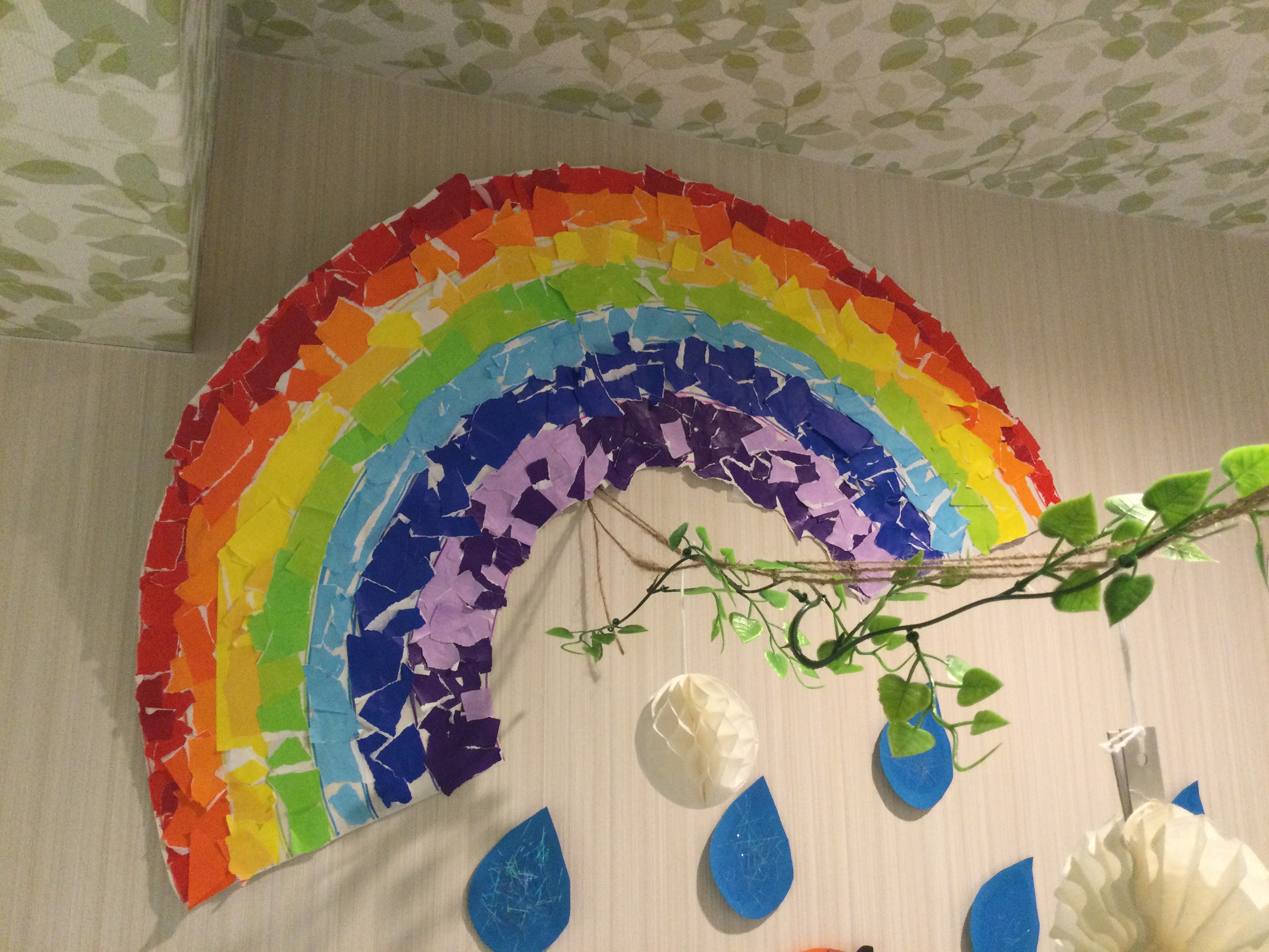 雨でじとっとした空気もカラフルな製作でとっても華やかになりました!