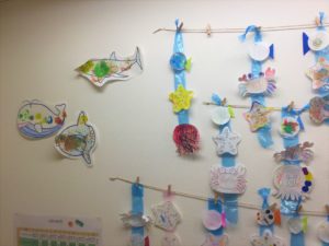 集団クラスで作ったユニークなお魚も3匹・・・💙
