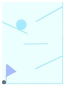 「コロコロゲーム」では、ボールが床を転がって旗までゴールするようにプログラミングしていきます。