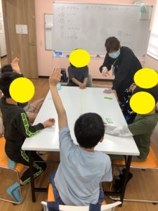 皆さんにわかりやすいように、学校をイメージしたゲームで日直や生徒役などを
