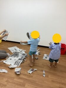 まずは大きな新聞紙を手でびりびり!皆でたくさん破きました!