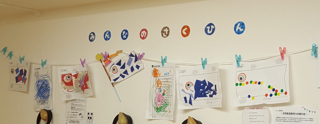 教室には、子どもたちが制作した個性あふれる鯉のぼりが泳いでいます![]()