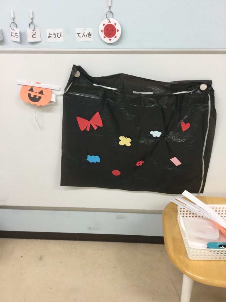 ジャックオーランタンの顔を張ったり、マントに切り絵やシールを付けました☆