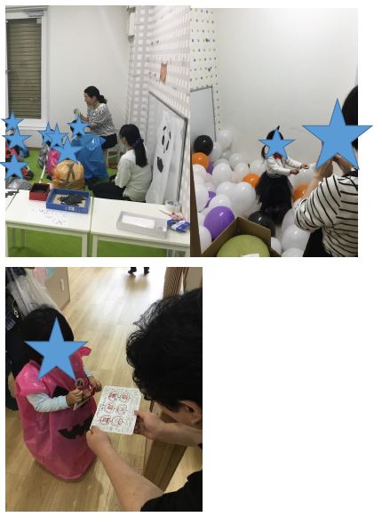 ・絵本コーナーでは、ハロウィンの本を読み聞かせ、皆で「トリック・オア・トリート」の掛け声を練習したりと、教室内にみんなの元気な声が響きわたりました。