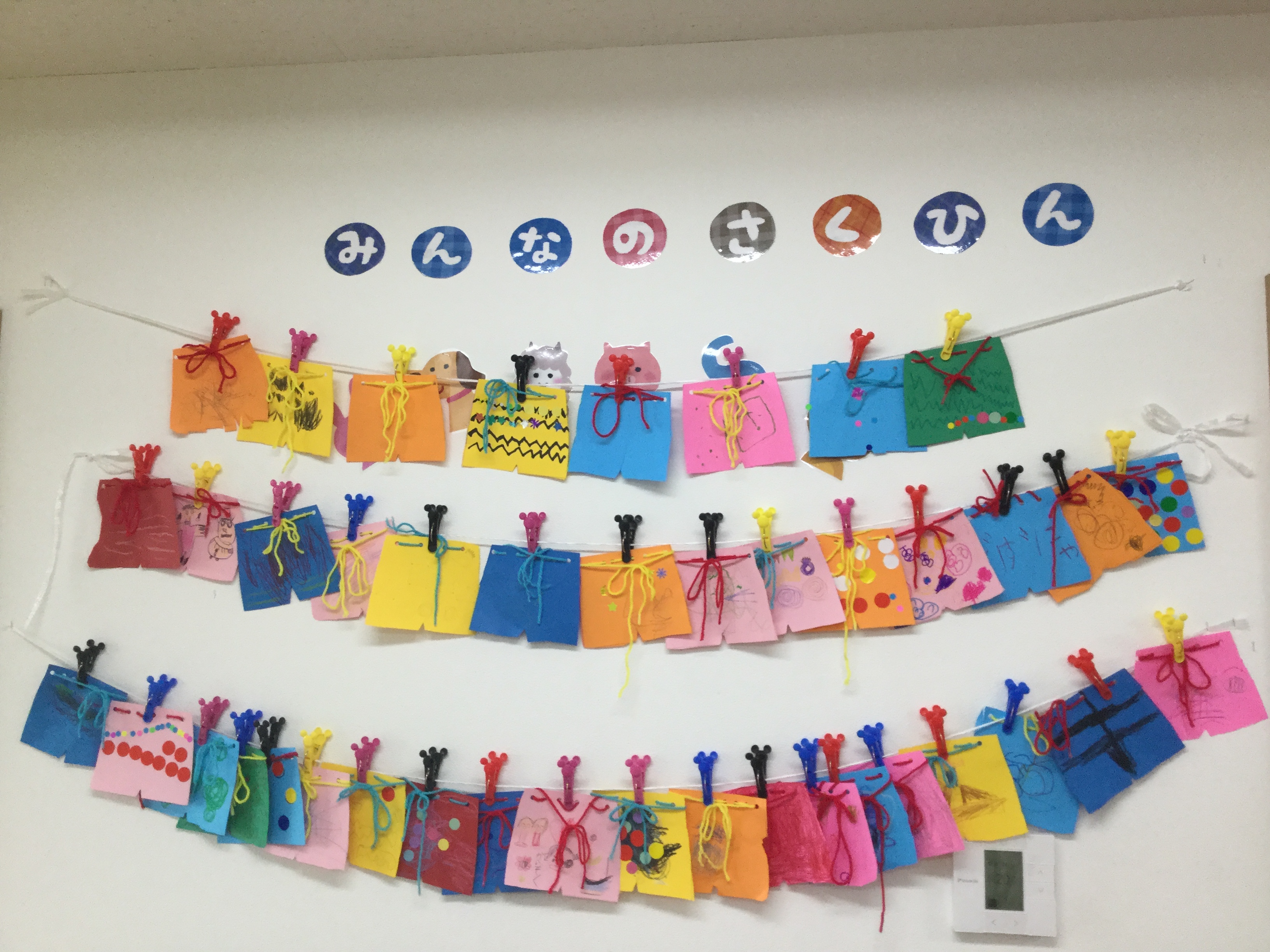 教室には色とりどりの鬼のパンツが並んでいます。