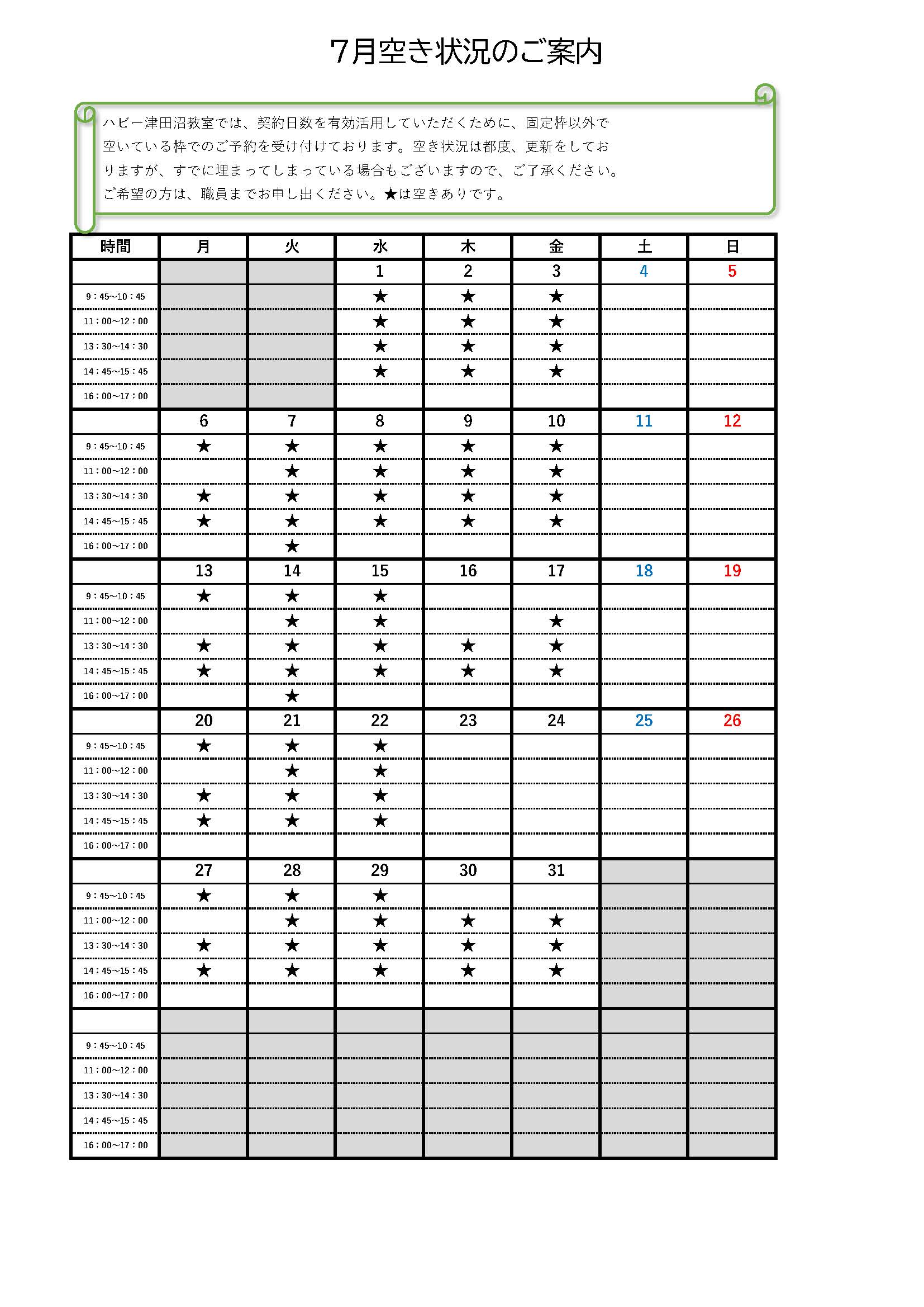 それでは、7月の教室の空き状況からお知らせします📌