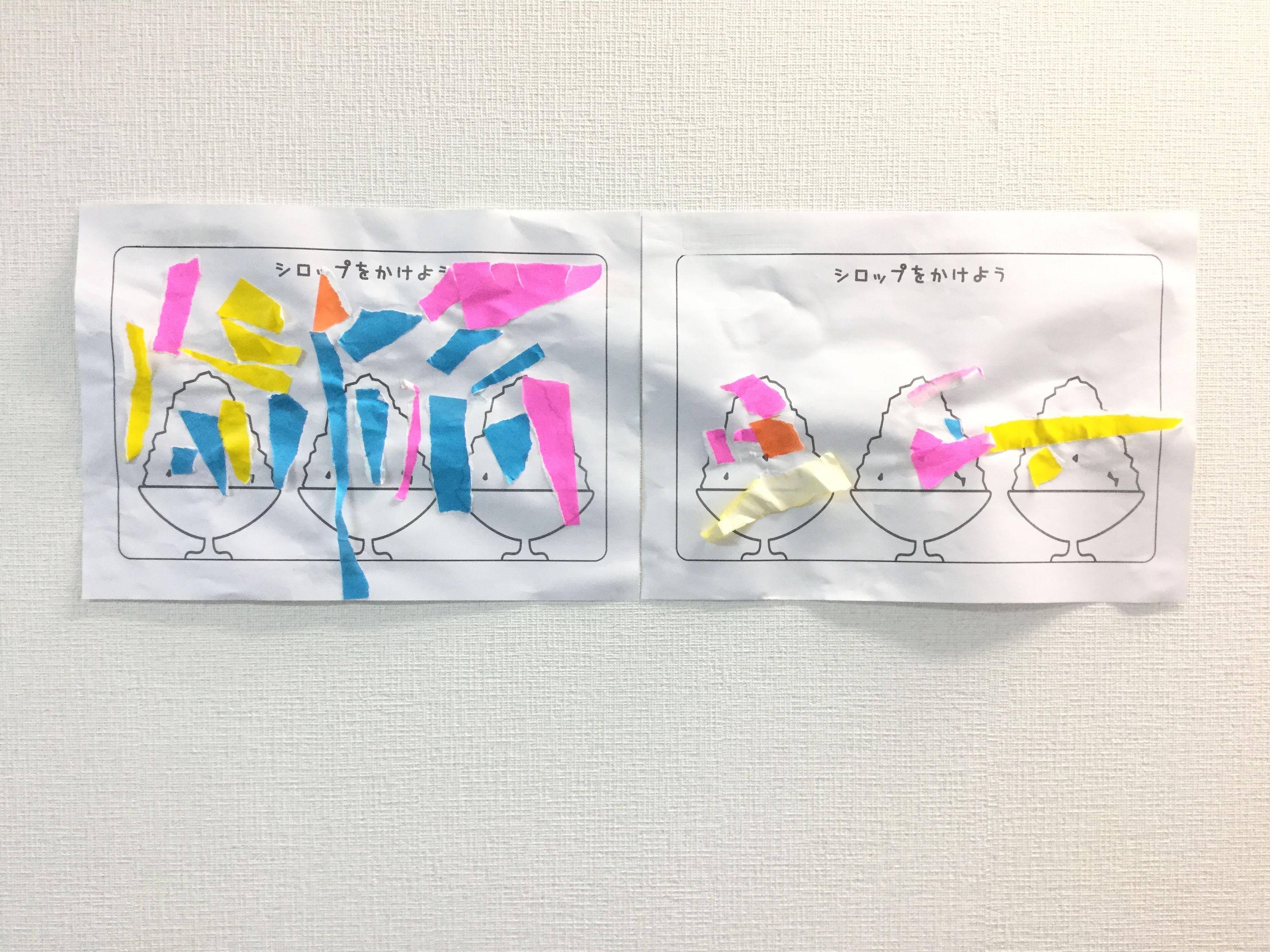 最後にシロップ(折り紙)をかけてかわいいかき氷の出来上がり♪