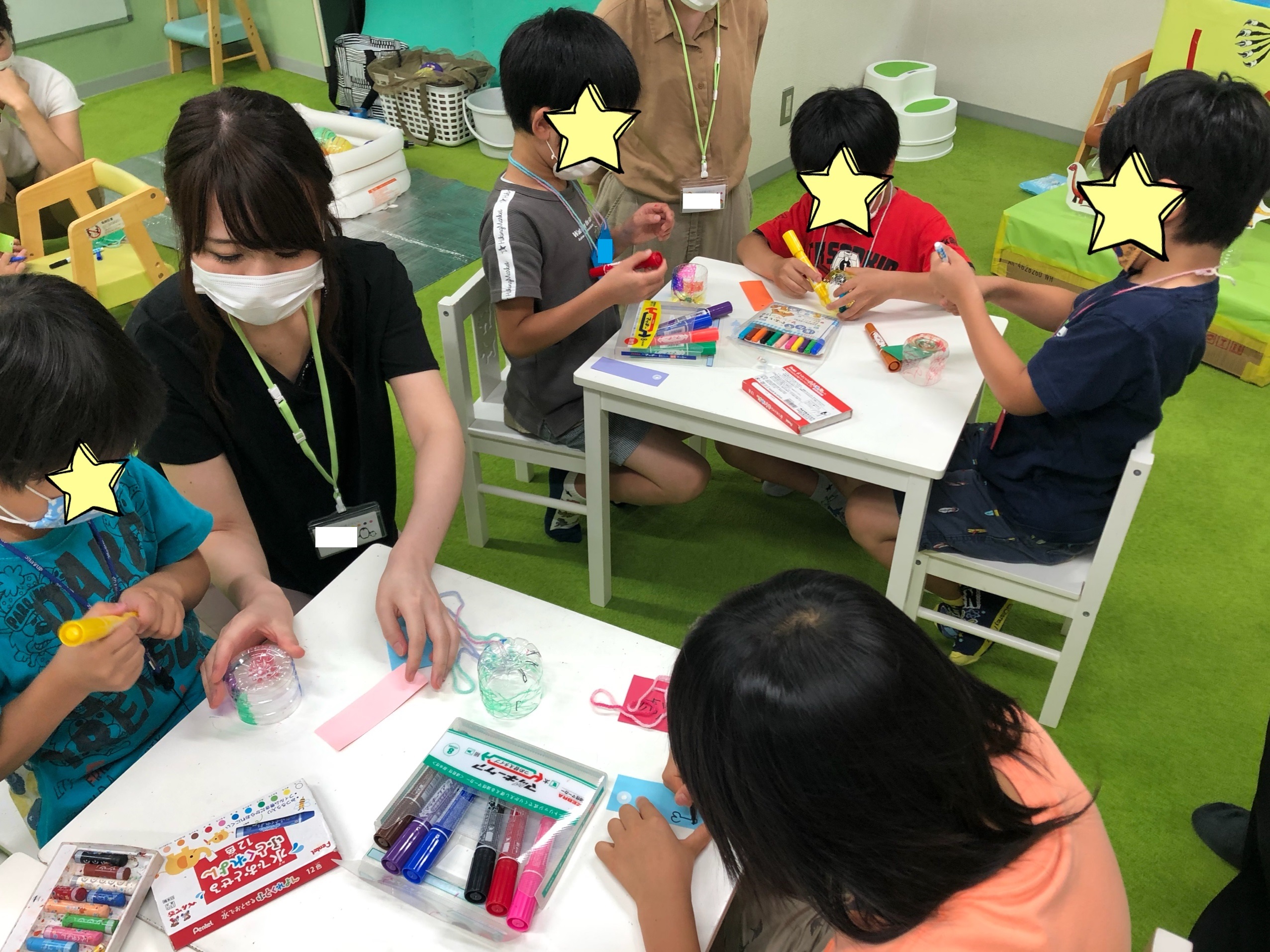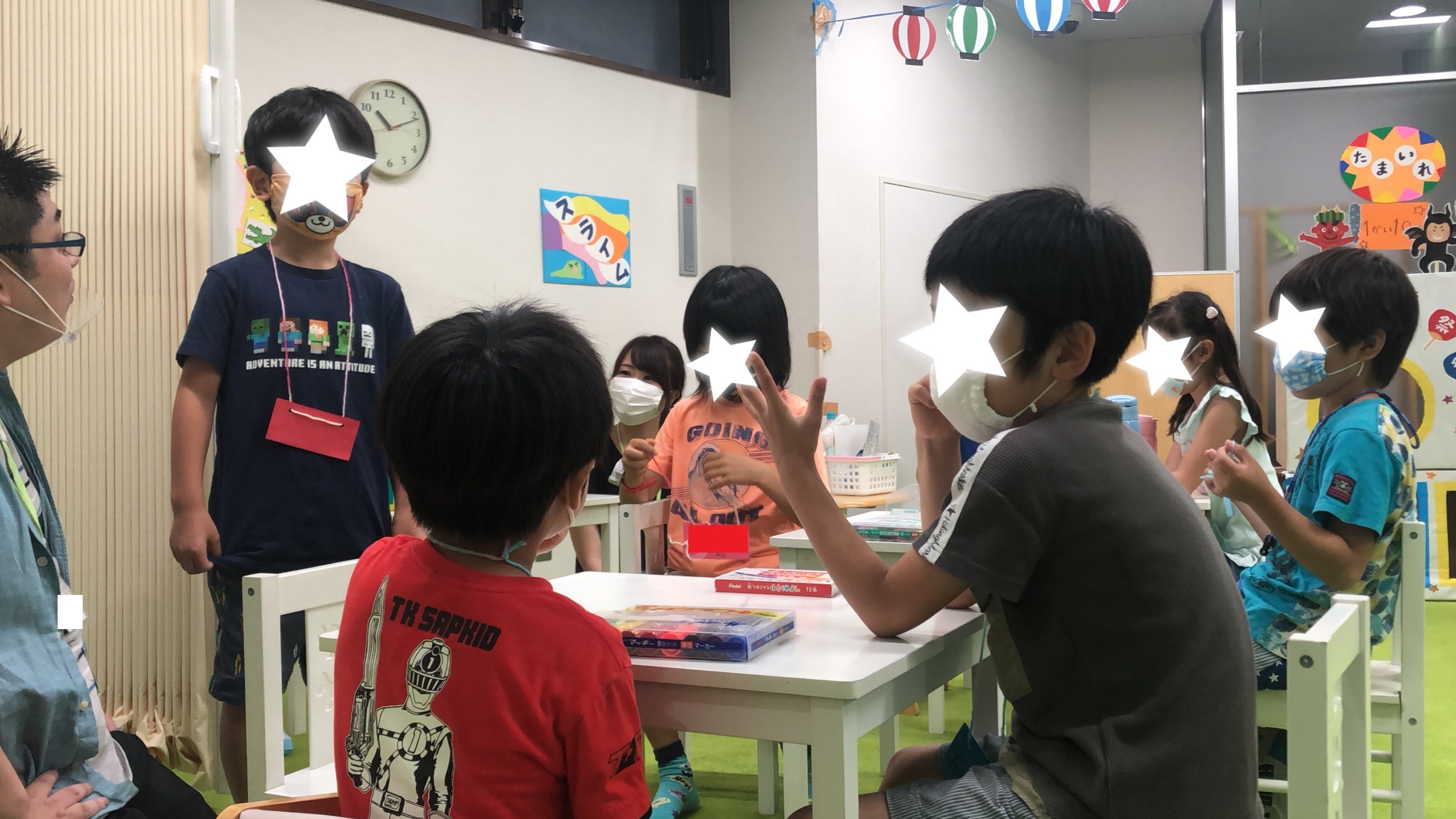 それぞれの学校でのことを発表し、制作では風鈴🎐を作り、夏まつりのコーナーでは射的やヨーヨー釣り、わなげやワニワニパニック、スライム作りなどを楽しみました!
