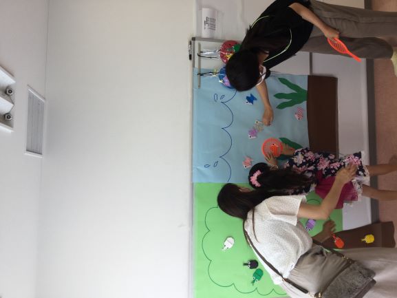 そこに、金魚かカブトムシの好きな方を選んでラケットでキャッチしたものをぺったん!