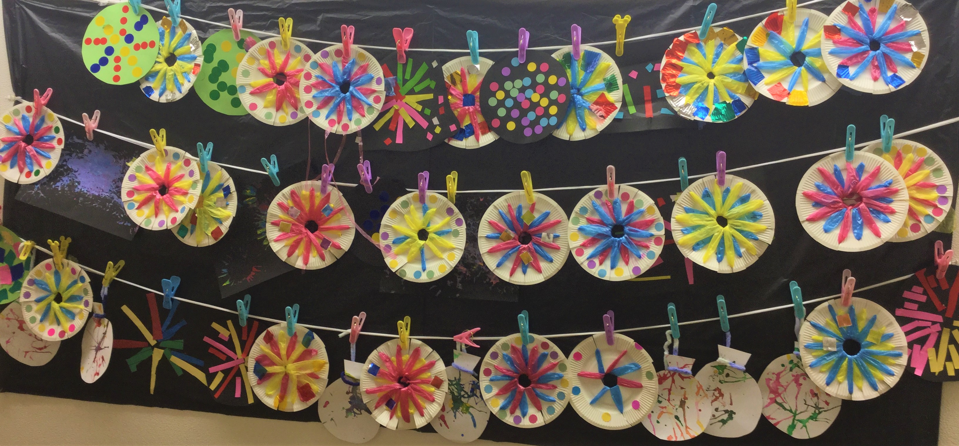 教室内に、子どもたちの夏の製作、花火やヨーヨーを展示してあります✿