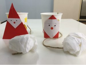 紙コップで作った「サンタクロース」。パックリ開いた口がなんとも愛らしい