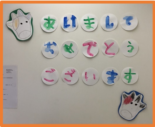 そして玄関ですが、今回は年長さん2人の作品が新年のおもてなしをしてくれました☺
