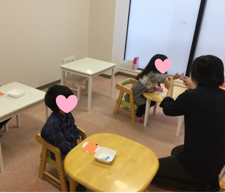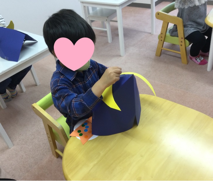 まずはみんなで兜作り♪好きな色のこいのぼりを選んでもらい、自由に制作してもらいました。