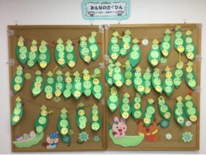 次に壁面のご紹介です!今回は「そらまめ」を制作しました☆