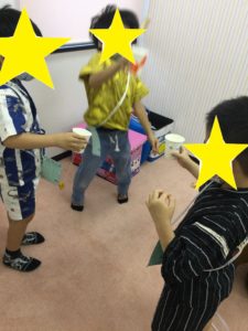 けん玉は出来上がると「コップにはいれ~」と体全体を使って玉を上にあげ、玉をよく見ながら落ちてくる場所を予測してキャッチ!みんな何度も挑戦していました。
