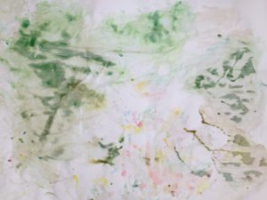 片栗粉を水で溶き、食紅で色を付けた手作りの絵具をたっぷり手に取って、ダイナミックな作品が出来ました。