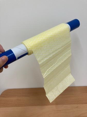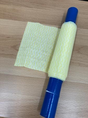 ラップの芯に、台拭き等で使われる布巾を貼り付け