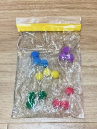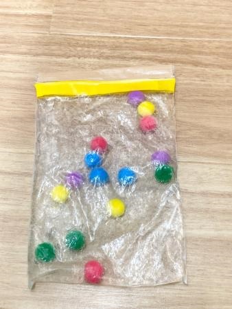 チャック袋とポンポン、そして保冷剤の中身を使っています