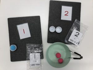 ・もう1セットの数字カードを袋に貼りつけ、数字と同じ数のカラーボールを袋に入れたら完成!