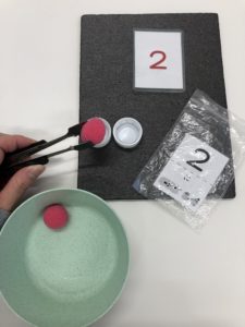 トングを使ってキャップに入れれば手先のトレーニングにもなります!
