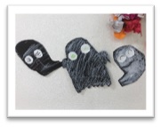 好きなおばけの形を選び、くれよんで塗り、おばけを作りました。