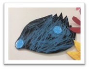 それぞれのパーツをのりで貼りつけ、クーピーを使って顔や模様を描いていきます。