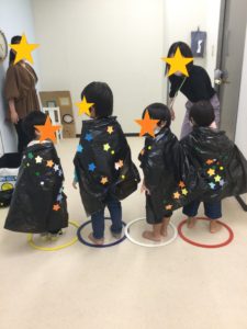 星やシールをたくさん貼って世界に一つだけのマントができましたね(^^♪