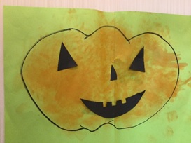 こちらは集団クラスのお友達が手形スタンプで作ってくれたジャックオーランタンです🎃