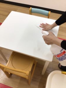 ハビー仙台教室では、感染症対策のため、支援前後に机や椅子、教材、モニター、床、など
