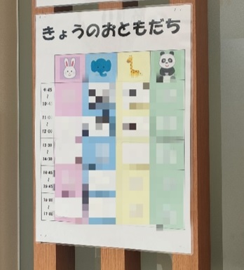まず本日の支援のお部屋を確認し、玄関の靴箱に靴を入れます。