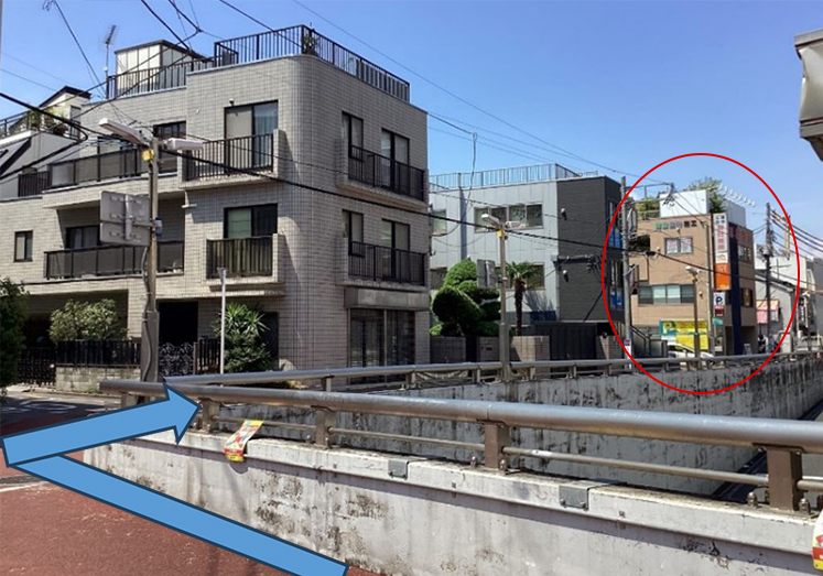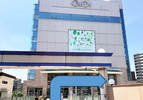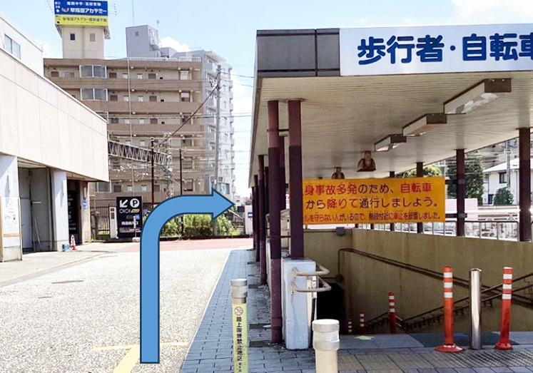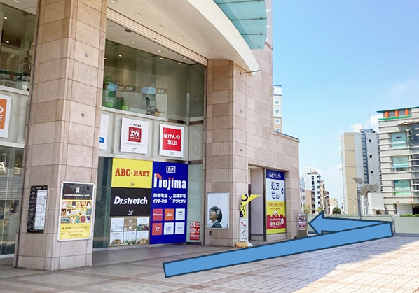 外へ出たらまっすぐ進み、マルイの建物に沿って歩きます。