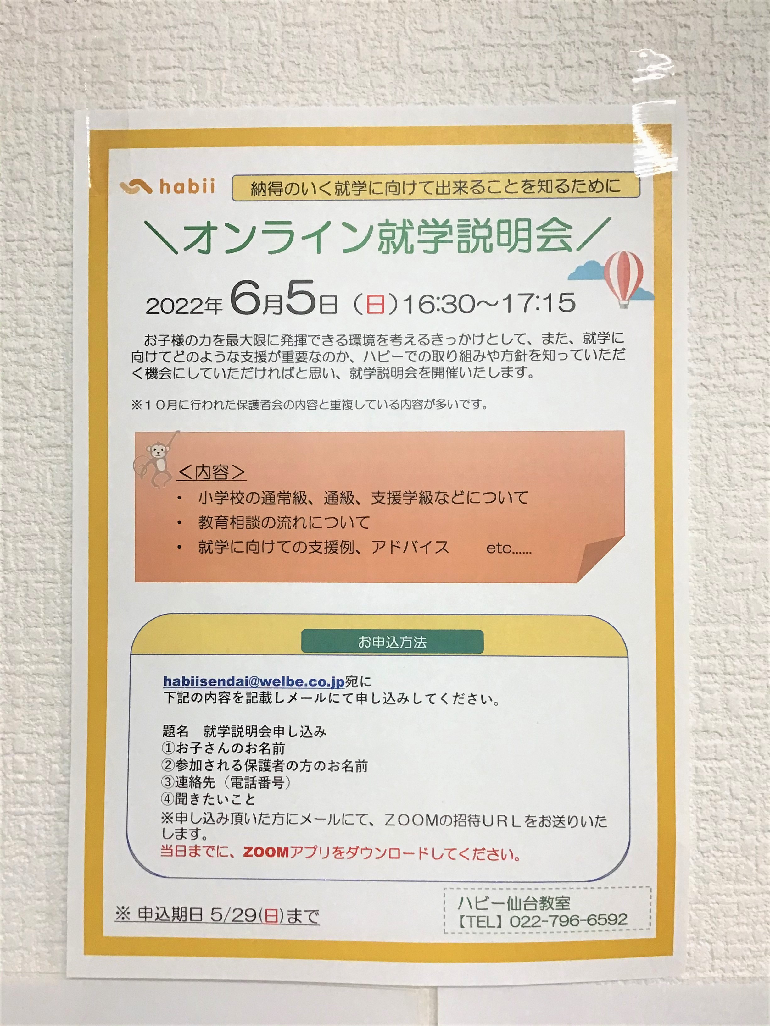 さて、6月の仙台教室では、オンライン就学説明会を企画しております!