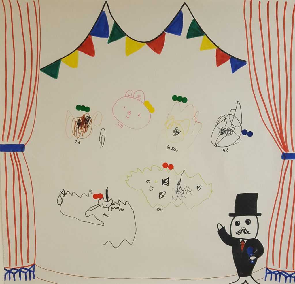 最後に大きな模造紙にサーカスに出てきた沢山どうぶつを描いてくれました![]()