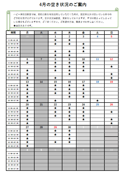 【津田沼】4月の空き状況&3月イベント報告&5月イベントのお知らせ