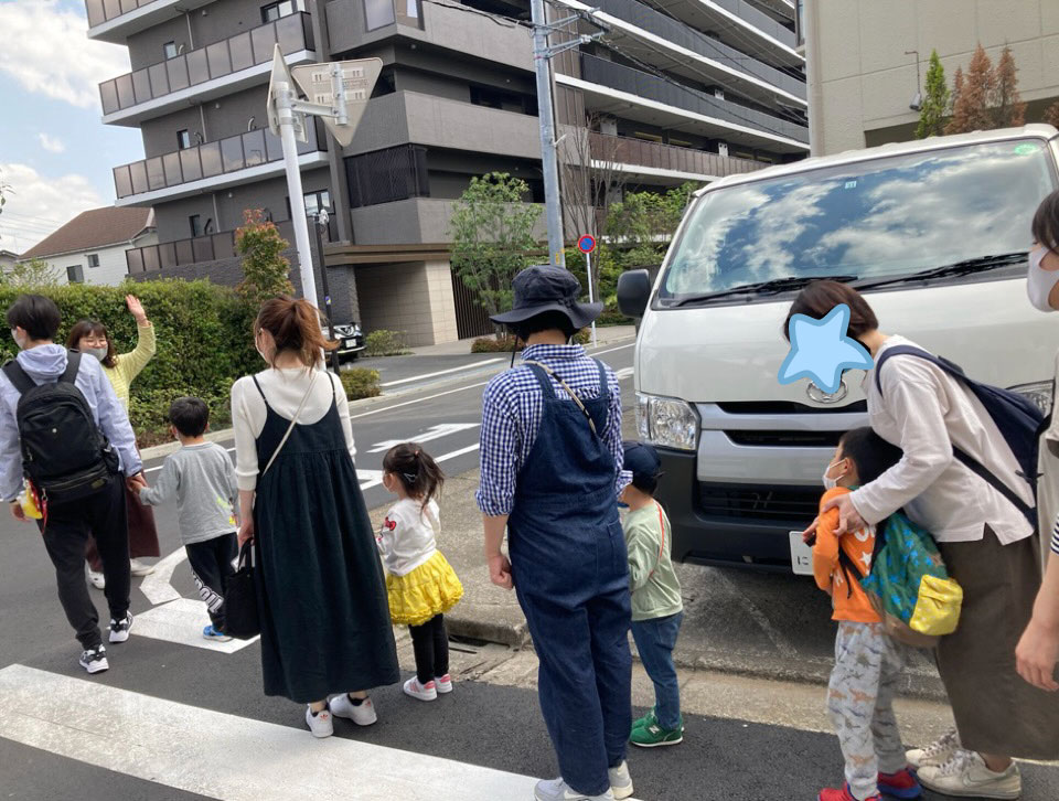 外に出ると子どもたちは「あ!くるまだ!」「おはなあった!」など色々なものに興味津々🙄