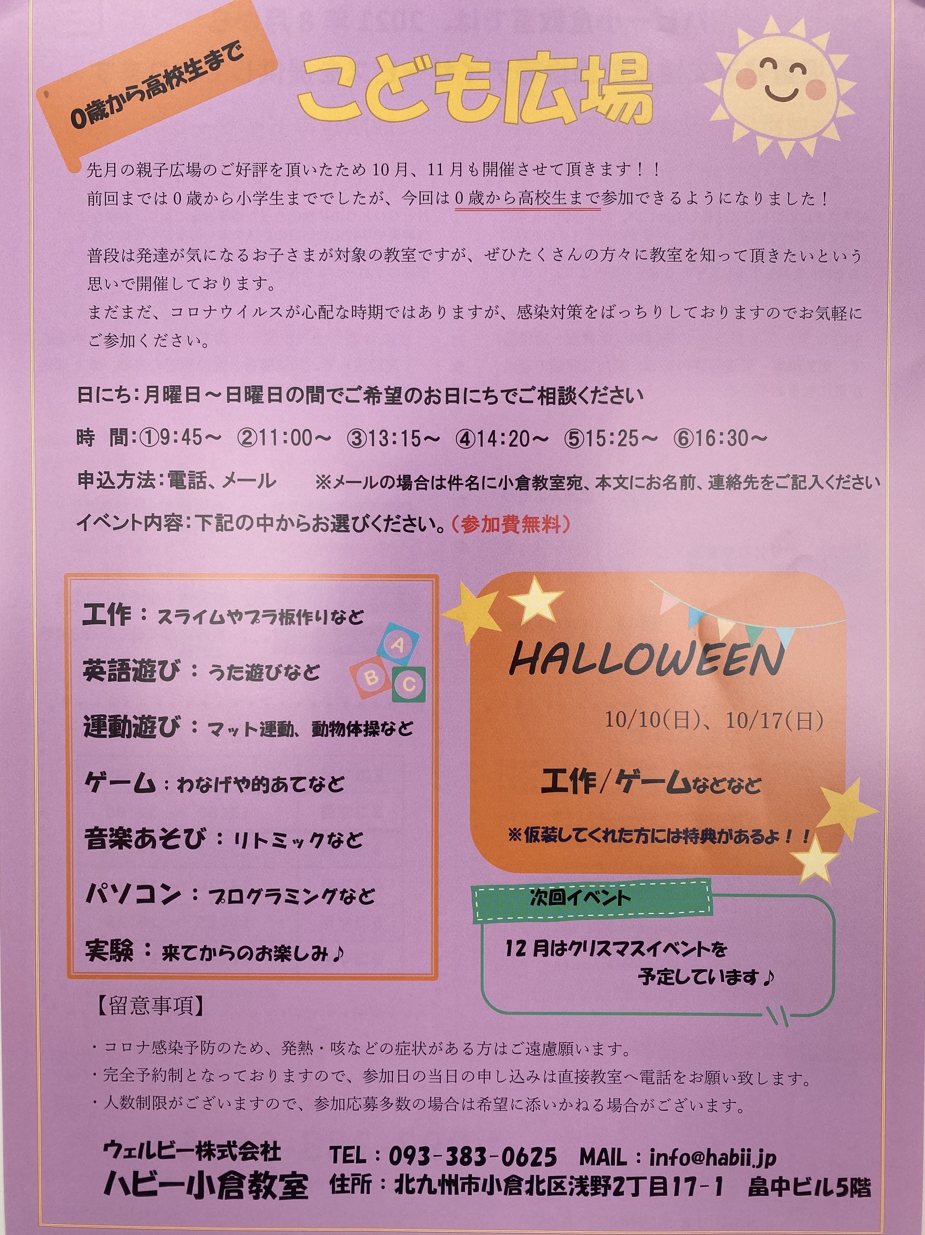 今回、ハビー小倉教室は、👻ハロウィンイベント👻を開催します!