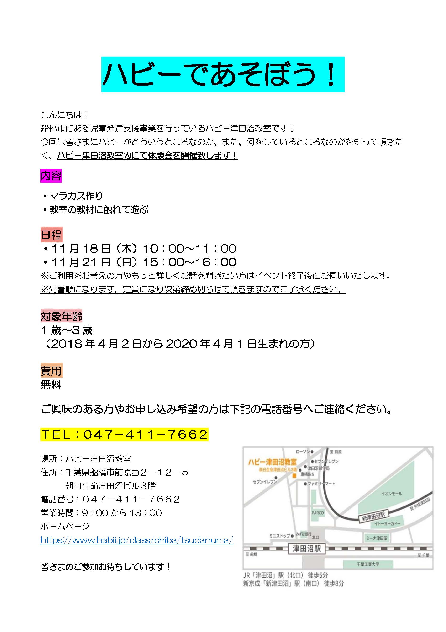 【津田沼】「ハビーであそぼう!」 体験会開催のお知らせ