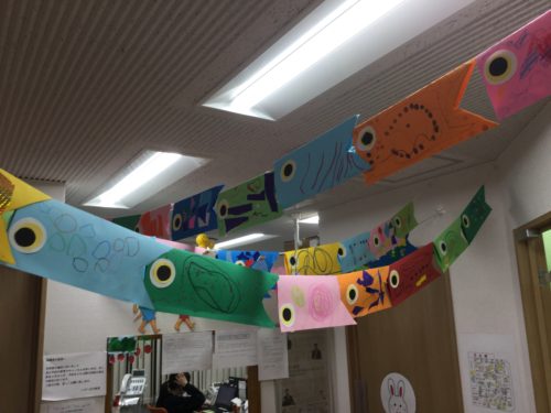 と自分の作ったこいのぼりを一生懸命探して