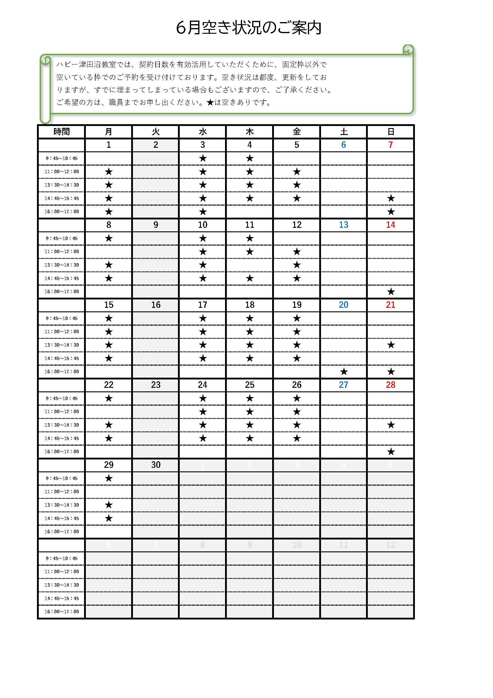 ハビー津田沼教室は7月より火曜日も開所することになりました。利用日の変更や追加がございましたら、スタッフまでお願いいたします。