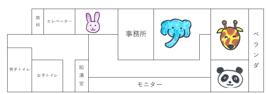 部屋はゾウ、ウサギ、キリン、パンダの4部屋になります。