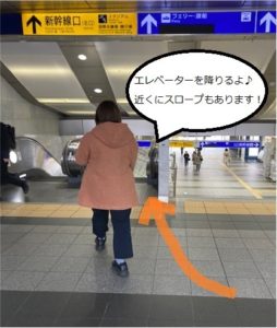 2. きっぷ売り場を過ぎるとエスカレーターがあるので降ります。