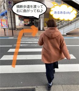 5.あるあるcityさんの前にある横断歩道を渡って右に曲がります。