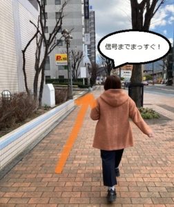 6.信号を目指し直進します。(アンサー倶楽部さんの大型モニター前の信号です。)