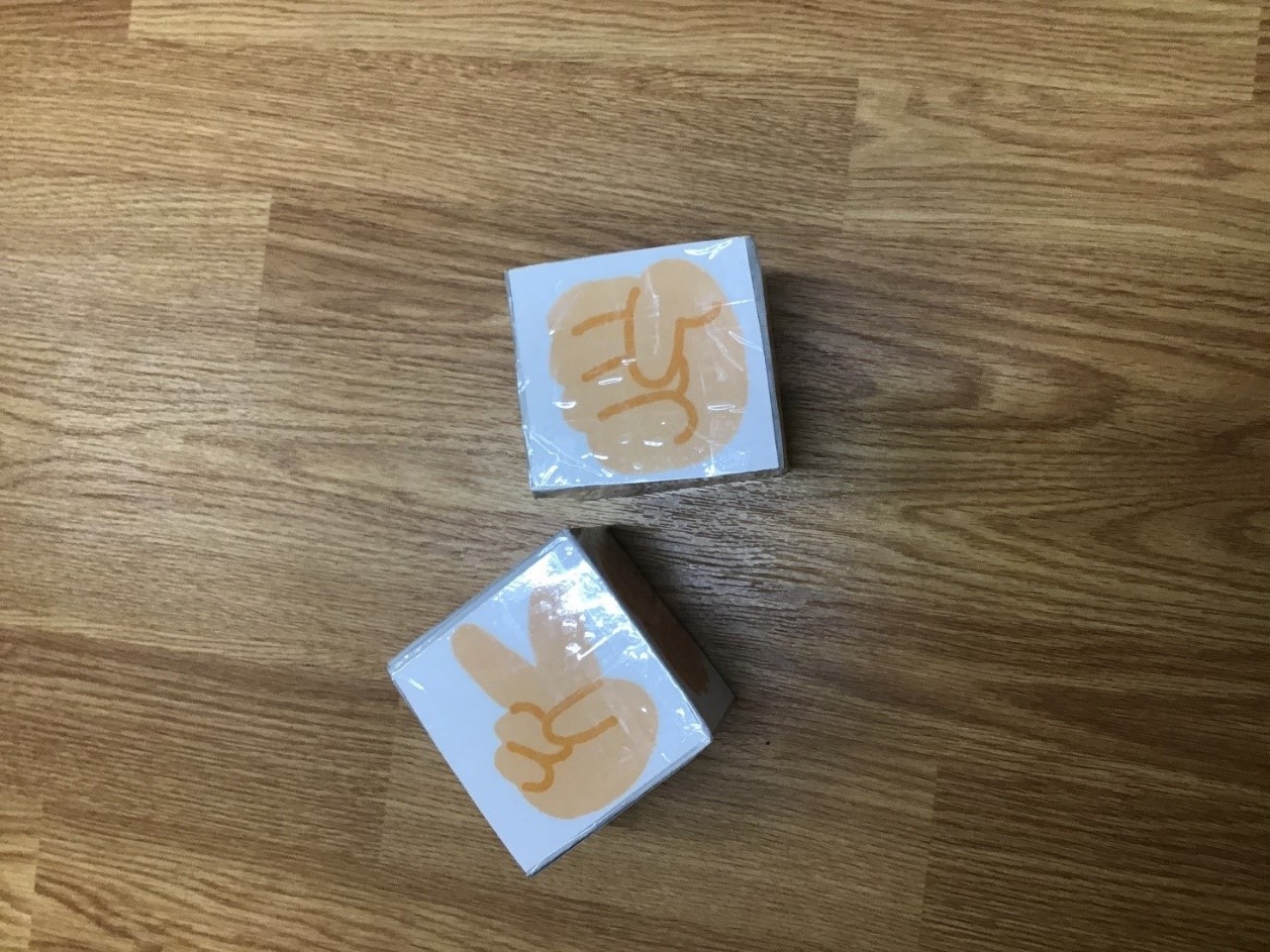まだ「じゃんけんポン!」のタイミングで上手く グー✊チョキ✌パー✋ の手を作って出せない子どももこれならじゃんけんができます。