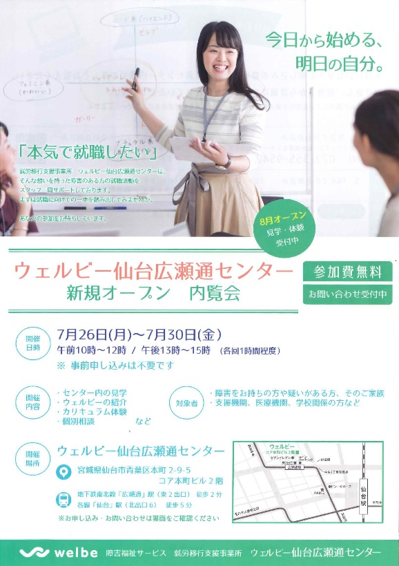 今回は仙台に新たな姉妹事業所「ウェルビー仙台広瀬通センター」が新たに