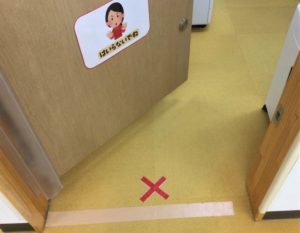 入りたい気持ちをグッと抑えて扉の前で立ち止まる子どもたち。えらい❕