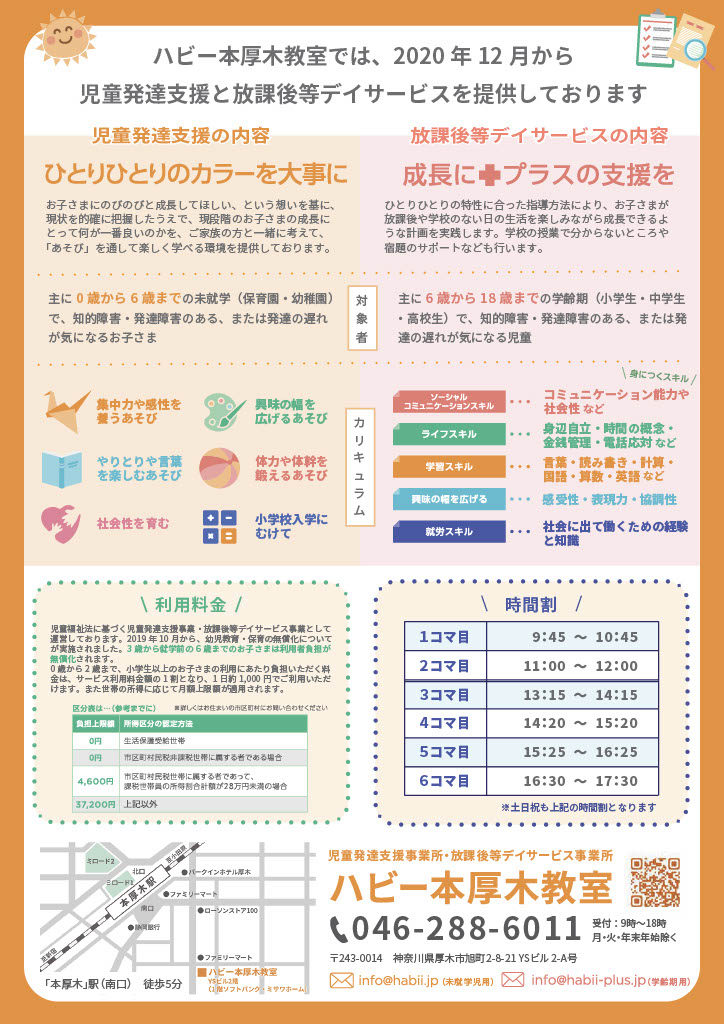開所日が増え、より多くのご利用者様のニーズに応えられる事業所になるよう、益々精進してまいりたいと思いますので、今後とも、ハビー本厚木教室を宜しくお願いします‼